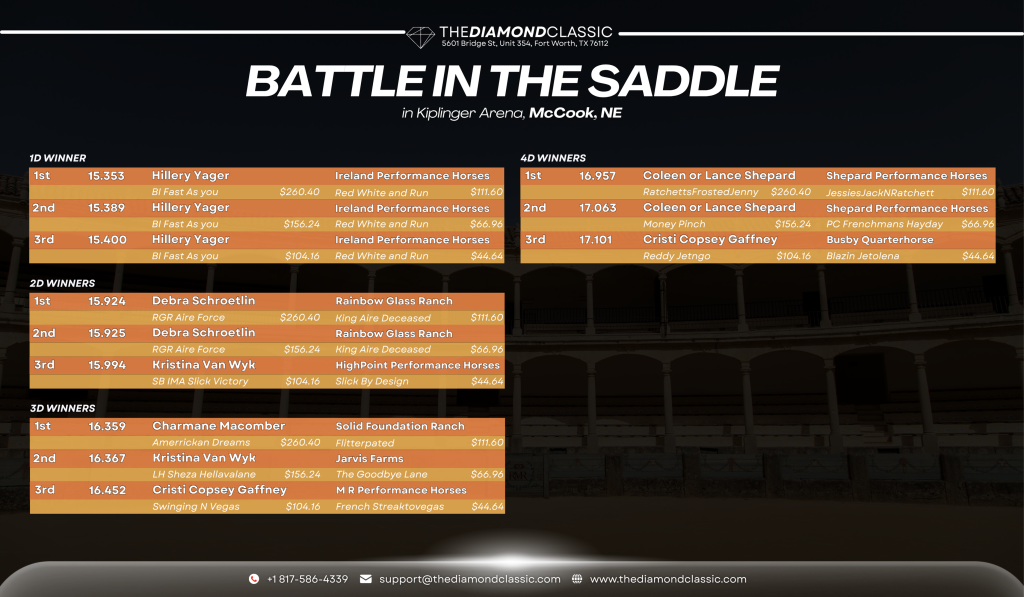 4D 1st16.957Coleen or Lance shepardRATCHETTSFROSTEDJENNY$260.40Shepard Performance Horses$111.60
