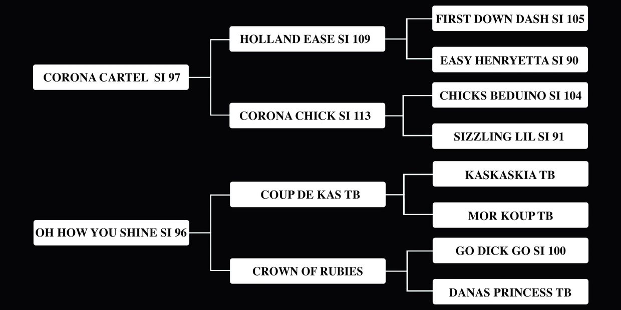 FIVE STAR CARTEL SI 114, g. These Eyes by Mr Eye Opener (8 wins to 5, $102,822 1st- IQHRA Dash for Cash S. 1st- Tom Tucker Memorial S. 1st- Queen City Dash 2nd- All American Congress Derby , etc.)